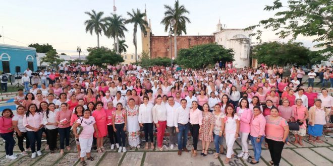 En el marco del mes de la lucha contra el cáncer de mama, más de 400 mujeres del PAN Yucatán de diversos municipios como Chichimilá, Ticul, Peto, Chapab, Sucilá, Muxupip, Panabá, Tekax, Tizimín, Motul, Umán, Muna, Xocchel, Huncumá, Mérida, Sacalum, Valladolid y Teabo, se reunieron en el parque de Santa Ana, donde realizaron un llamado a la autoexploración para la detección temprana que salva vidas, con la liberación de globos rosas como símbolo de la lucha contra esta enfermedad.