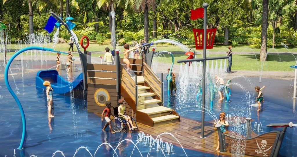 Aunado a ello, de manera histórica se van a construir dos nuevas grandes áreas de diversión para niñas y niños: un splash pad con área techada para generar sombra, con zonas acuáticas y juegos como lanzadores de agua, barco pirata y espacio con accesibilidad universal; así como una nueva área de diversiones extremas con tirolesa, caída libre, un brincolín para saltar sujetado, un laberinto, pared para escalar y una pista con carritos de pedales que harán un circuito.