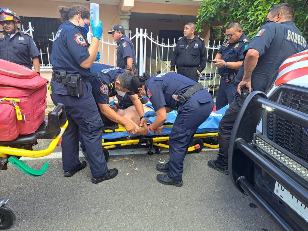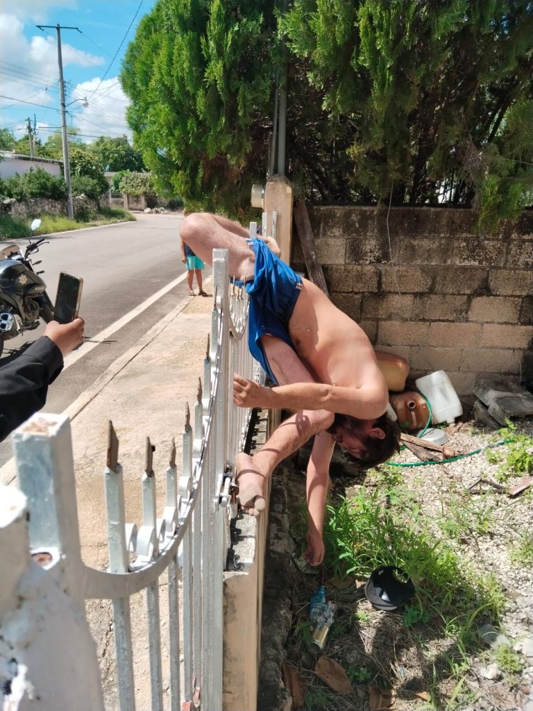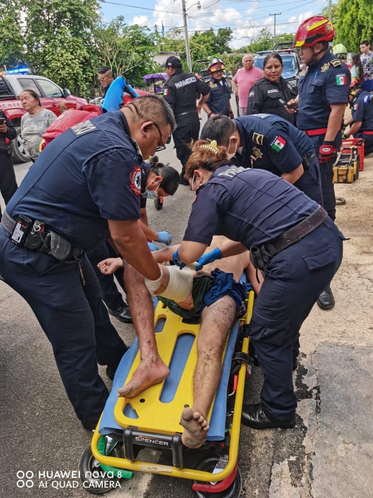 El parte oficial indica que elementos de la corporación realizaban recorrido de vigilancia esta mañana de domingo por calles de Kanasín y les reportaron que en la calle 58 con 73B y 75 de San Antonio Kaua 3, una persona estaba suspendida de un portón y tenía incrustado una parte del metal en la pierna derecha.