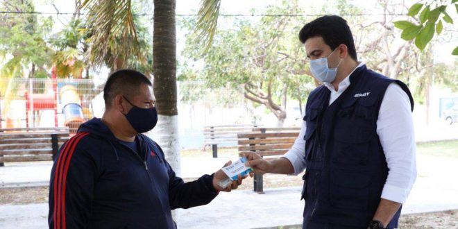De esta forma, se realizó la entrega de los vales en 14 puntos de Progreso al aire libre donde personal de la Sepasy atendió a no más de 4 personas al mismo tiempo, priorizando la sana distancia, el uso obligatorio de cubrebocas y gel antibacterial constantemente.