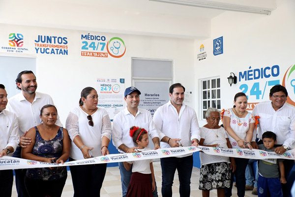 Como parte de su gira de trabajo en el municipio de Progreso, Vila Dosal inauguró un consultorio más del esquema “Médico 24/7” en la comisaría de Chelem, en donde recordó que en campaña se comprometió a abrir espacios de este tipo en cada cabecera municipal, pero en el caso del puerto, en la cabecera hay doctores 24 horas, por lo que se decidió llevarlo hasta este poblado.