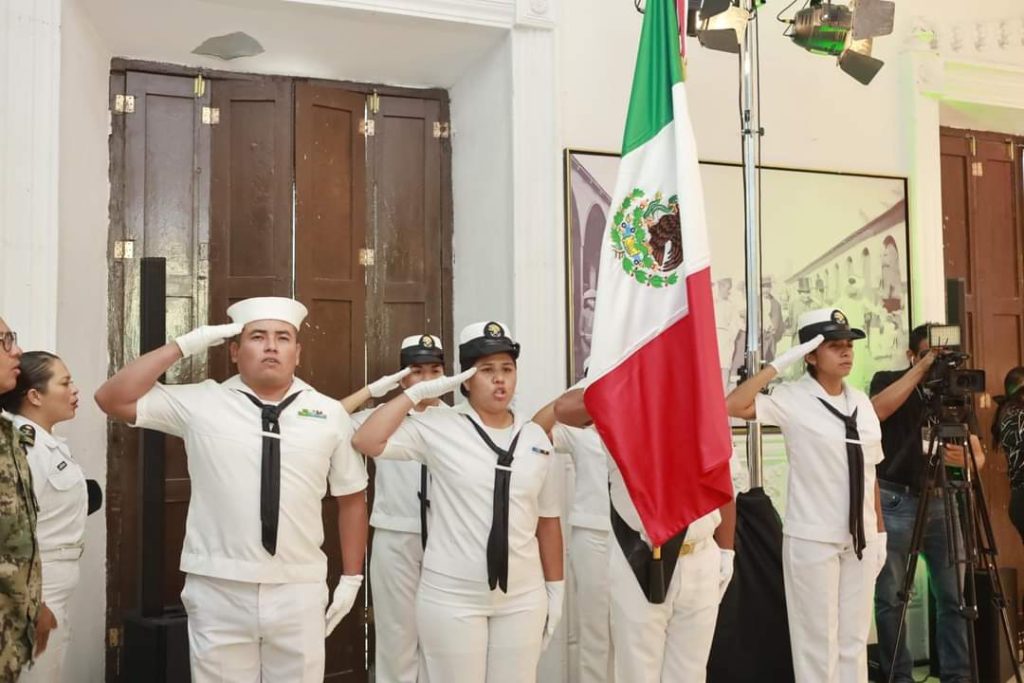 La ceremonia, efectuada en la Sala Juarez del Palacio Municipal, comenzó con los honores a la bandera a cargo de la escolta de la XIII Zona Naval de Yucalpetén