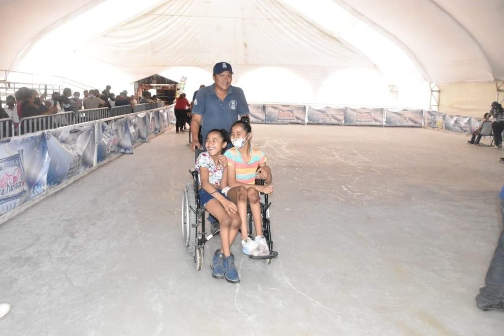 La mañana de este lunes tocó el turno a niños y jóvenes del Centro de Atención Múltiple de Kanasín, quienes pudieron disfrutar también de la pista de hielo.