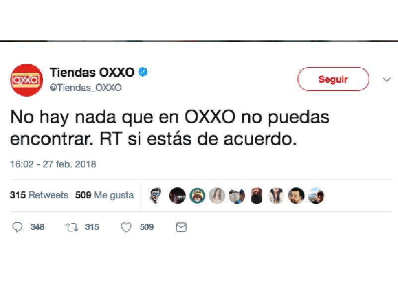 “No hay nada que en OXXO no puedas encontrar. RT si estás de acuerdo”.