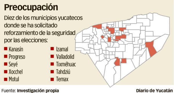 MÉRIDA, Yuc., 5 de junio 2021.- Ante el temor de que los hechos de violencia política se puedan salir de control en la jornada de mañana, entre el 25 y el 30% de los municipios yucatecos ha solicitado la presencia de la fuerza pública estatal o de la Guardia Nacional.