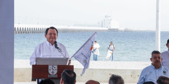 Teniendo como escenario el Malecón Internacional de Puerto Progreso, el mandatario estatal encabezó este evento que contó con la participación de la entidad, así como de los estados de Guerrero, Baja California Norte, Jalisco y Quintana Roo de forma remota, gracias a la coordinación del Gobierno de México, a través de un enlace con “La Mañanera” de la Presidenta Claudia Sheinbaum Pardo.