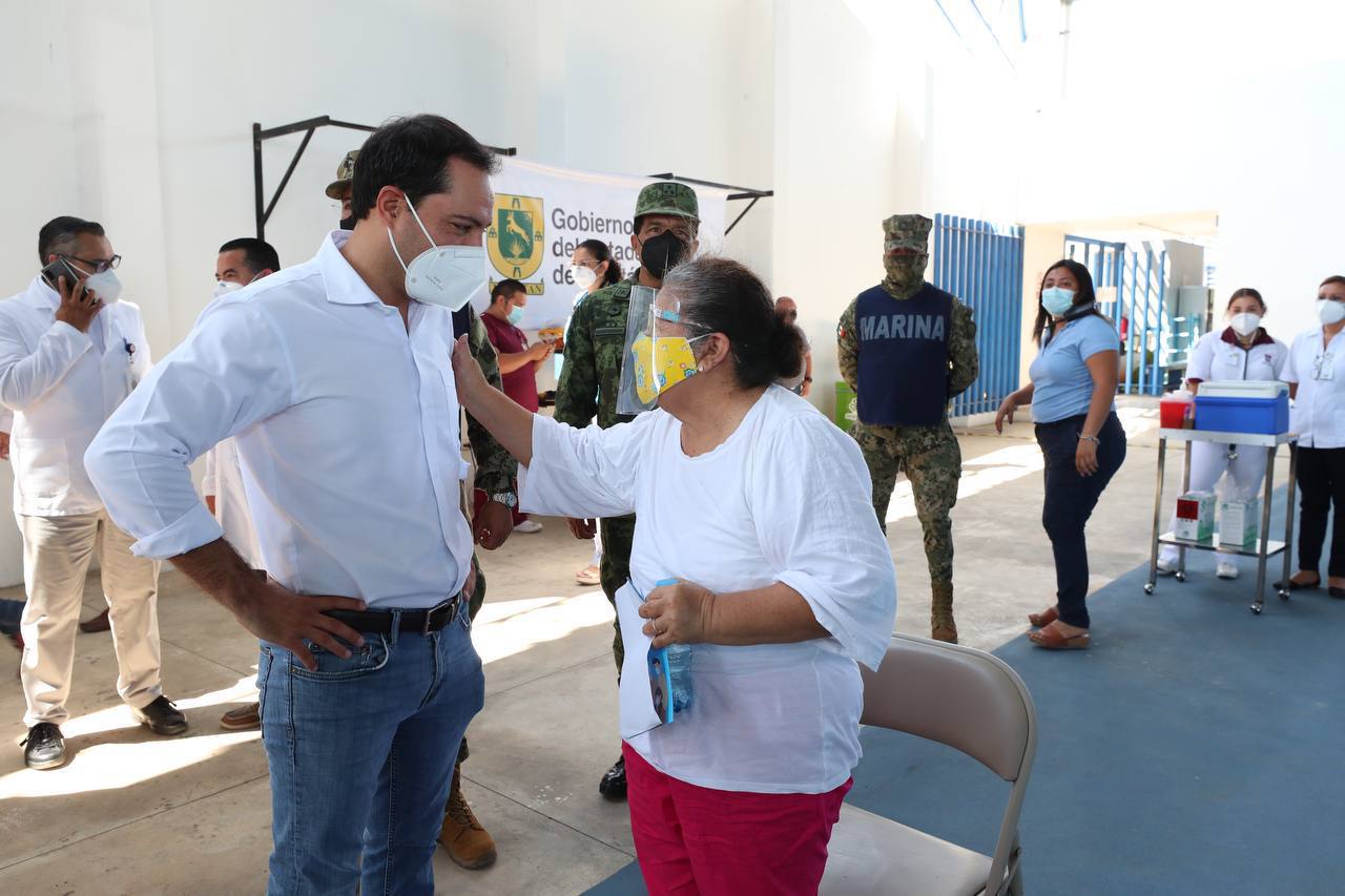 Durante su recorrido por el sitio, Vila Dosal platicó con Martha Tomasa Dzib Uh, quien dijo sentirse muy dichosa de haber recibido la vacuna, ya que es diabética y por más de un año ha estado a la espera de que llegue ese rayito de esperanza.