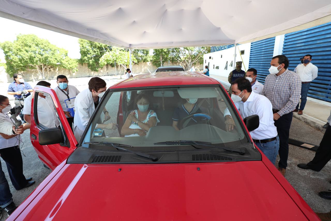 Junto con el rector de la Universidad Modelo, Carlos Sauri Duch, y el responsable de dicha sede, Ricardo Ortiz de Ora Irigoyen, Vila Dosal constató el funcionamiento de la zona habilitada para la vacunación en el vehículo, la cual está destinada a las personas que por su edad o algún padecimiento tienen dificultad para caminar y bajarse de su transporte, por lo que personal del módulo acude hasta ellos para realizarles el procedimiento.