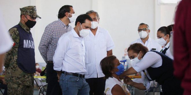Acompañado del coordinador Estatal para la Vacunación Covid-19, Capitán de Corbeta Carlos Gómez Montes de Oca, y del titular de la Secretaría de Salud del estado (SSY), Mauricio Sauri Vivas, el Gobernador señaló que la vacunación de los adultos mayores en la capital yucateca y municipios del interior del estado continúa progresando con normalidad, en orden y sin contratiempos.