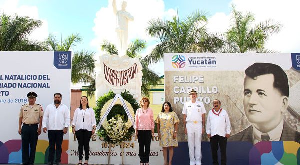 “Al cumplirse hoy el 145 aniversario de su natalicio, la grandeza de su obra se intensifica al recordar que en el poco tiempo que gobernó logró sacar a nuestro estado de la servidumbre, de la esclavitud y de la ignorancia, convirtiéndolo en un pueblo con futuro, en desarrollo”, manifestó el presidente del Partido Socialista del Sureste, Luis Orlando Catzín Durán.