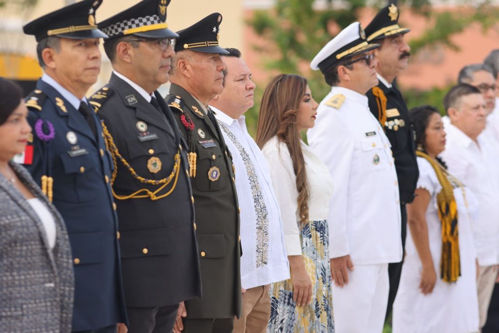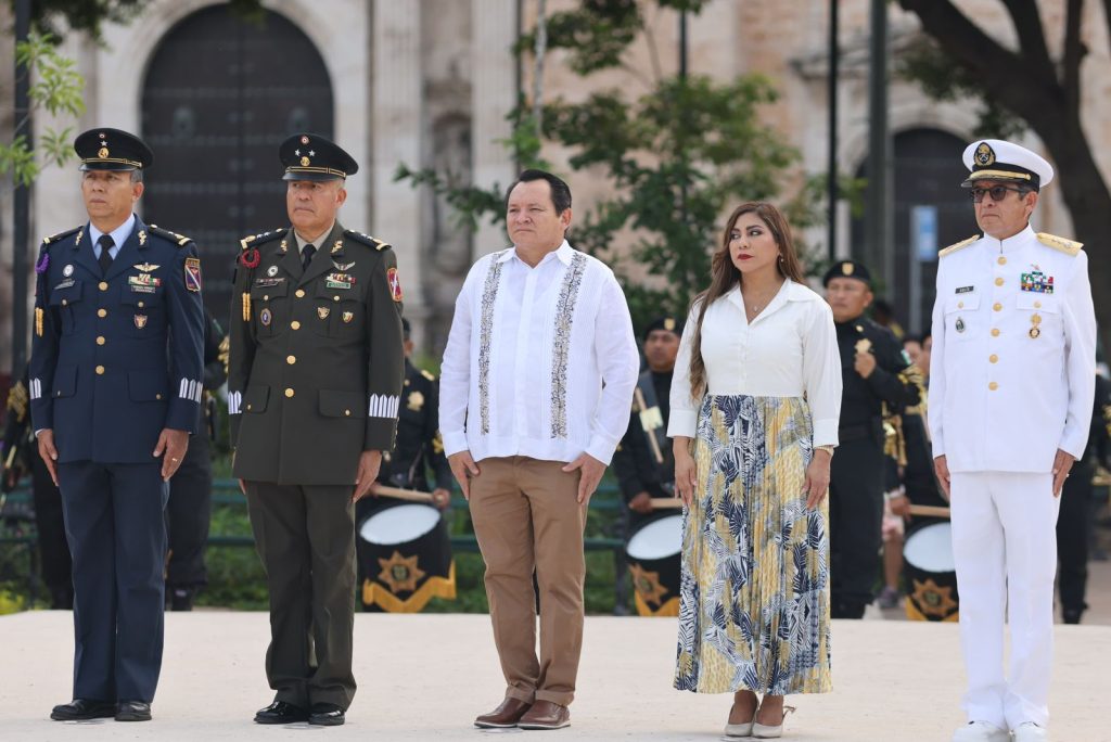 Acompañaron al Gobernador los comandantes de la 32 Zona Militar, General de Brigada Bernardo Reginaldo Reyes Herrera; de la XIII Zona Naval, Vicealmirante Héctor Rafael Solís Hernández; y de la Base Aérea Militar número 8, General de Grupo Piloto Aviador Magdaleno Castañón Muñoz; el titular de la SSP, Luis Felipe Saidén Ojeda; los diputados locales Neyda Pat Dzul y Wilmer Monforte Marfil; así como la alcaldesa de Mérida, Cecilia Patrón Laviada