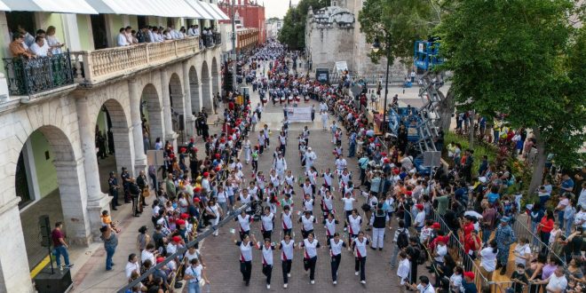 Junto con la presidenta del Sistema para el Desarrollo Integral de la Familia (Yucatán), la maestra Wendy Méndez Naal, y sus hijos Julián y Joaquín, el Gobernador presenció la participación de un total de 4,652 elementos divididos en 64 contingentes, que a su paso dieron muestra de marcialidad en el recorrido, que partió de Paseo de Montejo y culminó en el barrio de San Juan, pasando por las principales calles del Centro Histórico de la ciudad de Mérida.