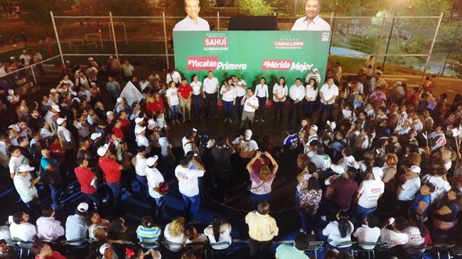 Mérida, Yucatán- Con el respaldo de la militancia del oriente y poniente de la capital yucateca, el candidato del PRI, PVEM y Panal a la gubernatura, Mauricio Sahuí Rivero encabezó multitudinarios actos en las colonias Jesús Carranza y Mulsay, lo que marcó el primer día de actividades territoriales.