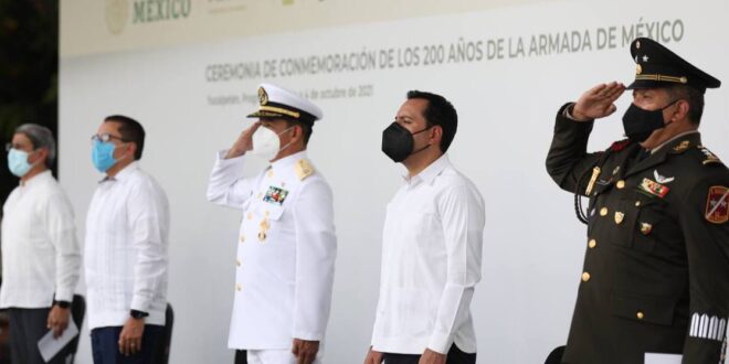 “Somos una institución que proviene del pueblo mexicano, al cual nos debemos y al cual servimos. De esta forma, refrendo el compromiso de cumplir con la misión. Con un enorme amor a México, los marinos navales hemos estado y estaremos a favor de las mejores causas de la nación: unidad, honradez, paz, seguridad y bienestar social. Exalto nuestro orgullo y gran honor por formar parte de la historia de nuestra institución, y a la vez expreso nuestro deseo de que podamos cumplir dos siglos más. Siempre comprometidos con la nación, y en nuestro caso en particular, con la sociedad yucateca. Empeñados en trabajar para servir a México”, concluyó.