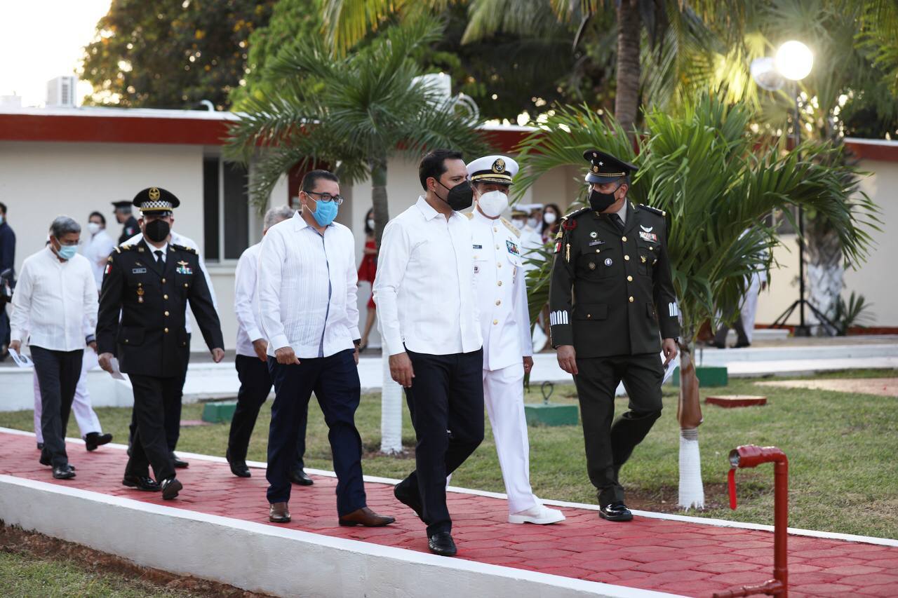 Acompañado de los representantes de los Poderes Legislativo, Víctor Hugo Lozano Poveda y Judicial, Ricardo Ávila Heredia, Vila Dosal presenció el acto, en el que se realizó en reconocimiento a todos los hombres y mujeres que otorgan su vida para salvaguardar con honor la seguridad de la nación.