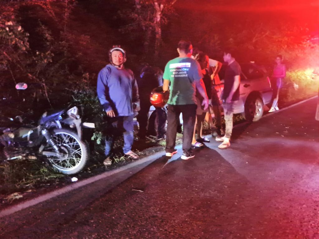 Por si fuera poco al derrapar el texanense y quedar atravesada la moto, el conductor de un automóvil Volkswagen que dirigía a la cabecera municipal chocó la nave de dos ruedas y termino parcialmente fuera del camino angosto.