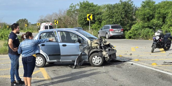 Los hechos ocurrieron alrededor de las 7 de la mañana de este lunes, cuando el conductor de una camioneta Ford 150, identificado como Dino “N”, circulaba en la Mérida-Tetiz, y al incorporarse en el entronque que comunica a la Tetiz-Hunucmá, no respetó la señal de alto y fue impactado brutalmente por un auto tipo Matiz que iba en la vía de preferencia conducido por Pedro M. S. (a) “Roro”.
