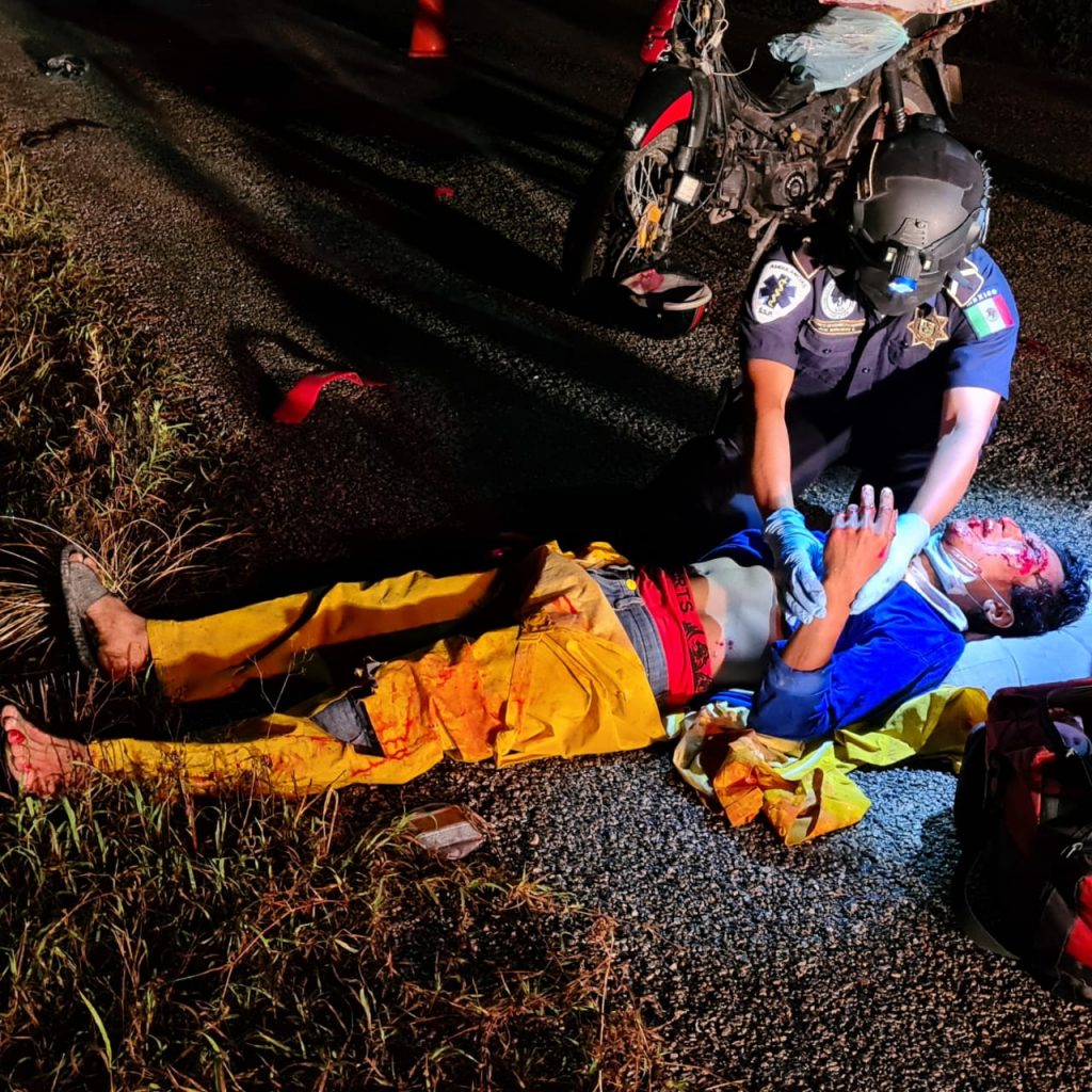 Al lugar llegaron policías municipales y paramédicos quienes atendieron a los lesionados resultando uno de ellos con heridas de gravedad, por lo que fue trasladado al hospital más cercano para una atención especializada. Toño vecino de Hunucmá, tuvo ruptura de hígado y bazo, por lo cual su vida pende de un hilo.