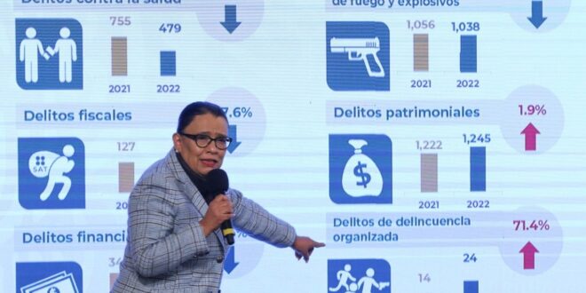 Rosa Icela Rodríguez, titular de la Secretaría de Seguridad y Protección Ciudadana (SSPC), informó que enero de 2022 fue el mes con menos delitos del fuero federal desde hace siete años.
