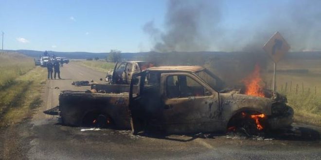 En el lugar, murieron cinco hombres aún no identificados, tres de ellos calcinados dentro de uno de los vehículos que presuntamente fue atacado con granadas.