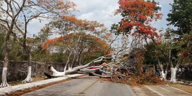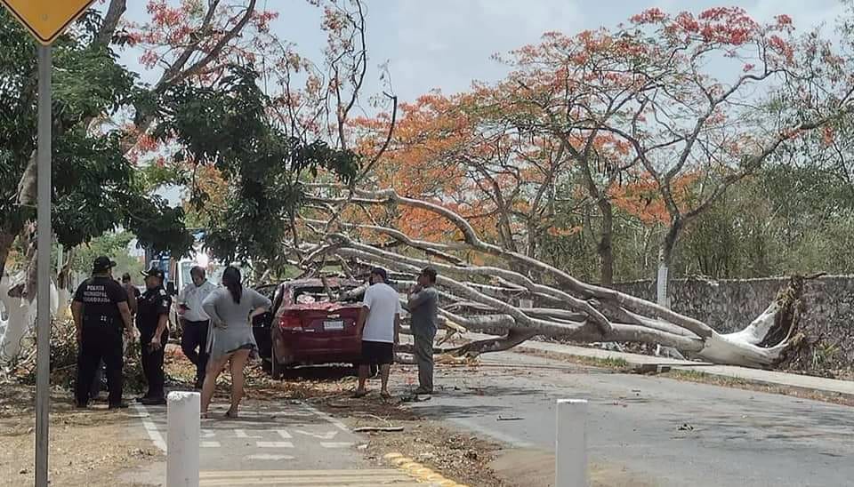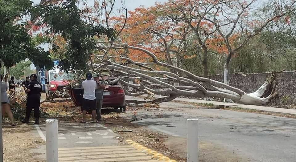 Afortunadamente salieron ilesos tanto la mamá y su retoño, la carretera se mantuvo bloqueada por varios minutos hasta que retiraron el enorme árbol por personal de Procivy local en coordinación con agentes de la Policía Municipal.