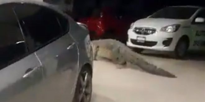 Home / Global / Enorme cocodrilo aparece en agencia de autos de Puerto Vallarta