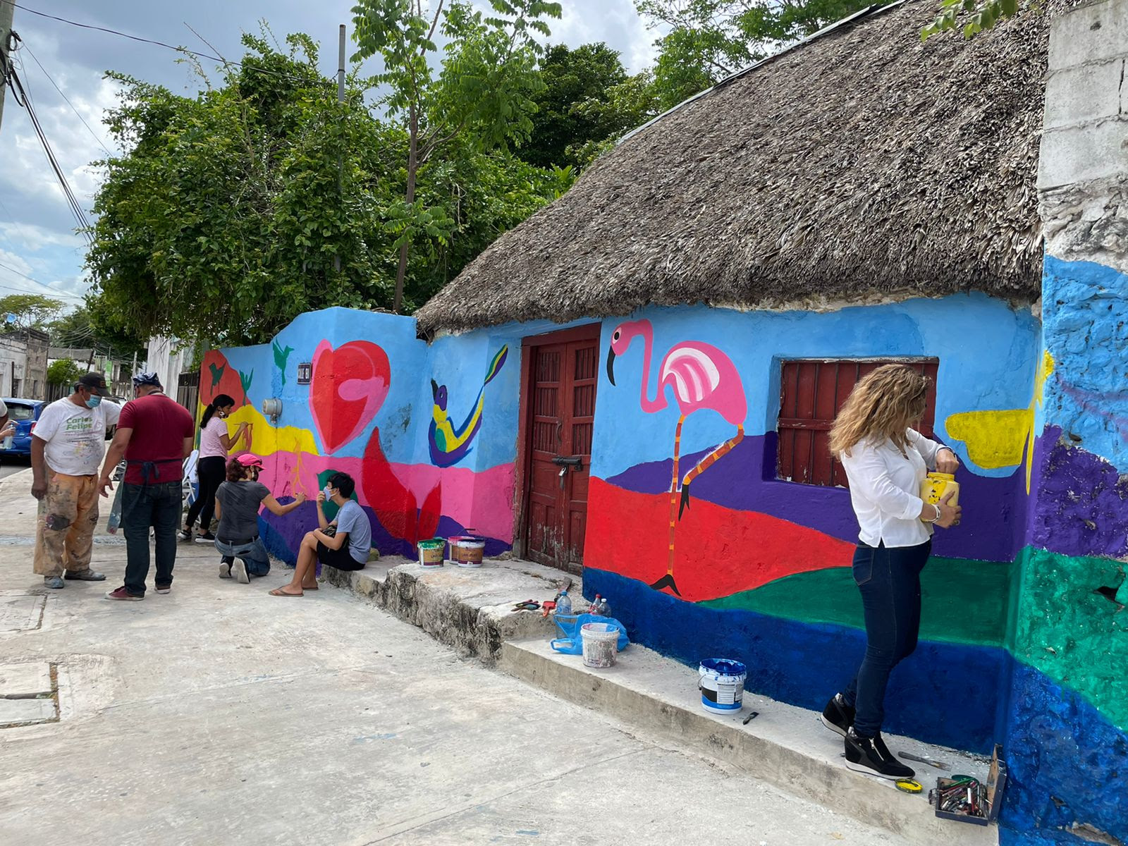 Precisamente en ese afán de unir pueblos, Chiu tendió un lazo gigante entre las dos puntas del país: desde el norte en Tijuana, Rosarito y Mexicali, hasta Mérida, donde a instancia del diseñador yucateco Guillermo Pérez Alayón y la Secretaría de Fomento Turístico (Sefotur), engalanó una casa del barrio de San Sebastián, con la policromía, los motivos naturalistas y el estilo que lo caracterizan.