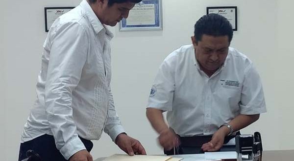 En punto de las 19 horas con 30 minutos, el Consejero Jurídico del Gobierno del Estado, Mauricio Tappan Silveira, le entregó al Secretario General del Poder Legislativo, Martín Chuc Pereira, el documento que integraba los nombres de las personas antes mencionadas, así como la documentación requerida.
