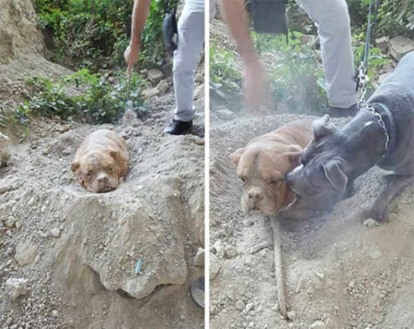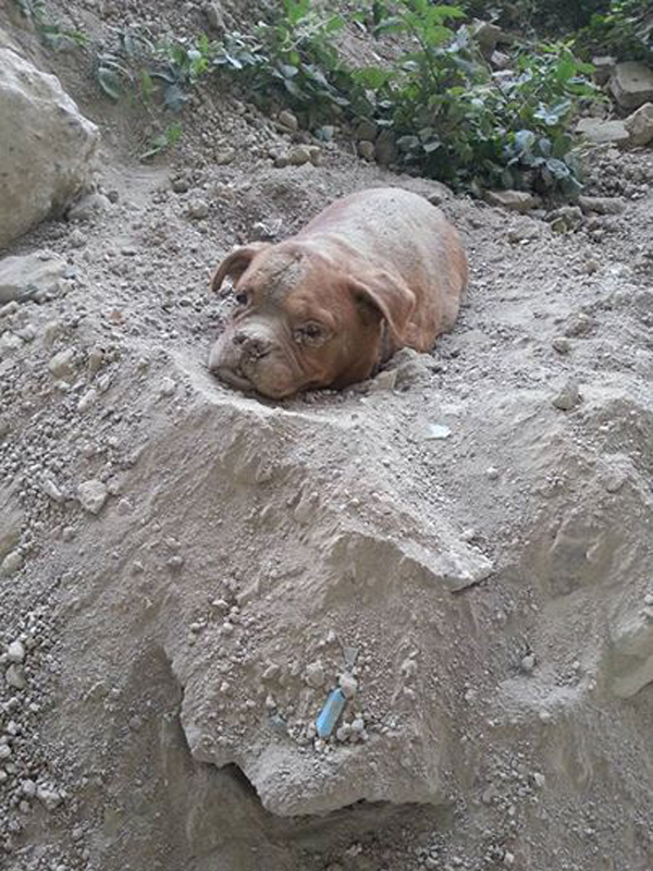 La curiosidad le ganó y al acercarse notó que en realidad era la cabeza de un perro enterrado vivo.