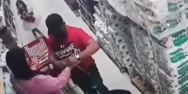 Más adelante, los mismos sujetos despojan de sus pertenencias a otro hombre dentro de la misma tienda.