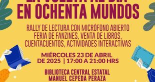 Otra iniciativa cultural para promover la lectura será a través de la LXXIV Feria Municipal de Libro, que se realizará del 28 de abril al 7 de mayo en el Pasaje de la Revolución.