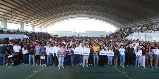 “En el Ayuntamiento trabajamos para que cumplan sus sueños, ofreciendo herramientas y programas que generen oportunidades de vida y crecimiento personal con justicia social, que les ayuden, orienten y acompañen para que puedan ejercer plenamente su derecho a la educación”, afirmó la alcaldesa desde la Unidad Deportiva de San José Tecoh.