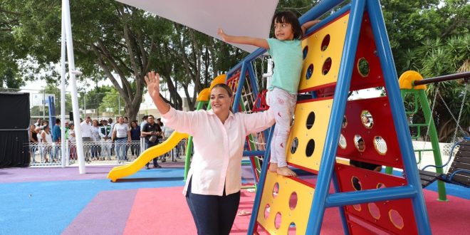 -La Presidenta Municipal entrega los trabajos de rehabilitación del parque del fraccionamiento Yucalpetén, uno de los 19 proyectos ganadores del mecanismo “Diseña tu Ciudad”.