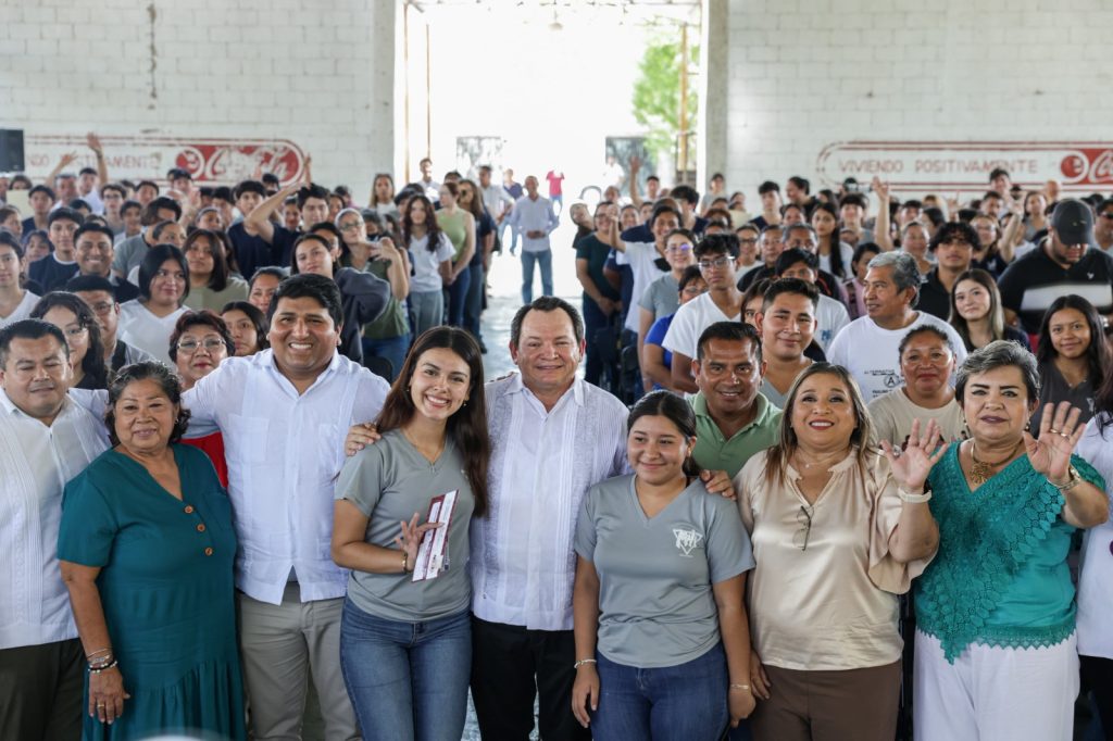 El gobernador Joaquín Díaz Mena entregó tarjetas de la beca “Benito Juárez” a 259 jóvenes estudiantes de la preparatoria “Miguel Ángel” en Mérida.