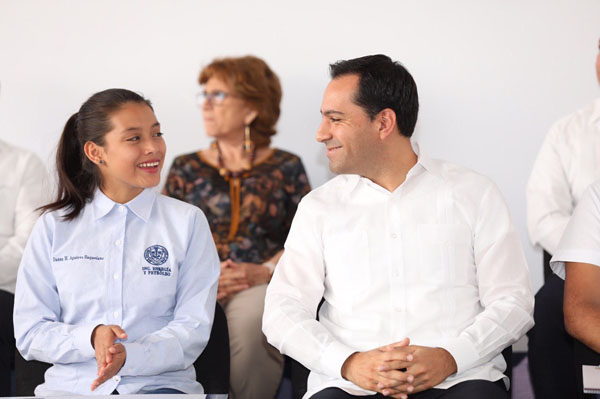 Los primeros en recibir sus becas de manos del Gobernador y del alcalde meridano fueron Danna Melissa Aguirre Baquedano, estudiante de Ingeniería en Energía y Petróleo en el Centro de Enseñanza Superior de la Escuela Modelo; Lizbeth Alejandra Carballo Vargas, de la licenciatura en Gastronomía en la Universidad del Valle de México; Gerardo Alejandro Carballo Vargas, alumno de la Licenciatura en Fisioterapia en el Centro de Enseñanza Superior de la Escuela Modelo; Ángel Antonio Guerrero Echeverría, alumno de Turismo en el Centro Escolar Felipe Carrillo Puerto y Diana Concepción Baas Pérez, de Ingeniería en Mecatrónica en Automatización en la Universidad Tecnológica Metropolitana.