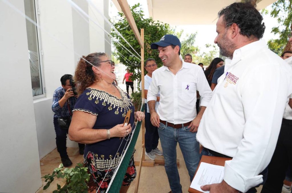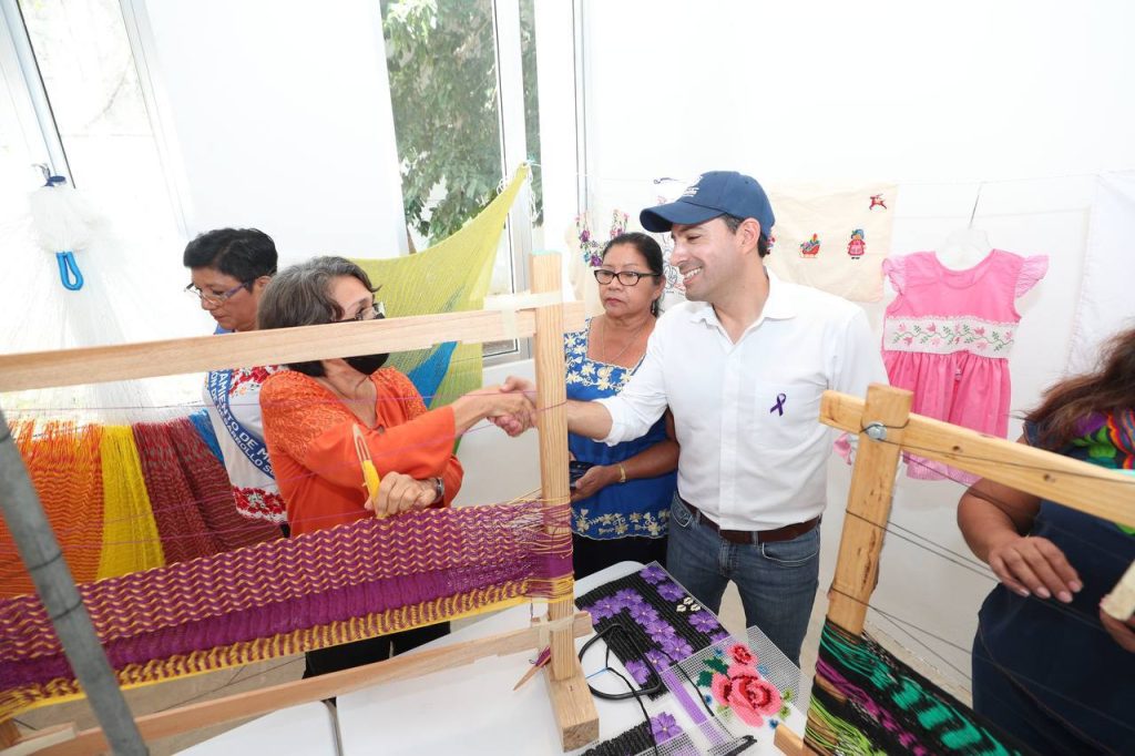 Momentos antes, Vila Dosal visitó el Centro de Desarrollo Integral de “Zazil-Há” y constató las mejoras a este espacio que ahora cuenta con un centro de capacitaciones con 3 aulas, baños, bodega, sala de juntas, sala de cómputo en equipo con la organización Save the Children, consultorio médico, biblioteca con área de estimulación temprana Báaxal como donación por Rotary Club Mérida Montejo, gimnasio al aire libre y un área techada abierta; también para mejorar la imagen de la zona, se renovó la biblioteca y el parque Cantaritos que se encuentra enfrente de este Centro. Ahí, el Gobernador observó los diferentes talleres que ahí se desarrollan como urdido de hamaca, bordado a mano, manualidades con pintura textil y joyería.