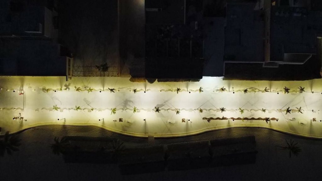 El director del Instituto para la Construcción y Conservación de Obra Pública en Yucatán (Inccopy), Virgilio Crespo Méndez, indicó que, se realizó también el suministro y colocación de 291 piezas de vegetación con plantas como uva de mar y palmas kerpis y de coco, para reforestación; iluminación urbana y arquitectónica en los recorridos a través de 260 piezas de iluminación con bolardos con tira led y postes con tecnología led; mobiliario urbano con más de 66 piezas entre bancas, botes de basura, señalización y bancas aparcabicicleta y la perforación y forjado de 41 pozos pluviales en el malecón y calles perpendiculares y forjado de registro pluvial.