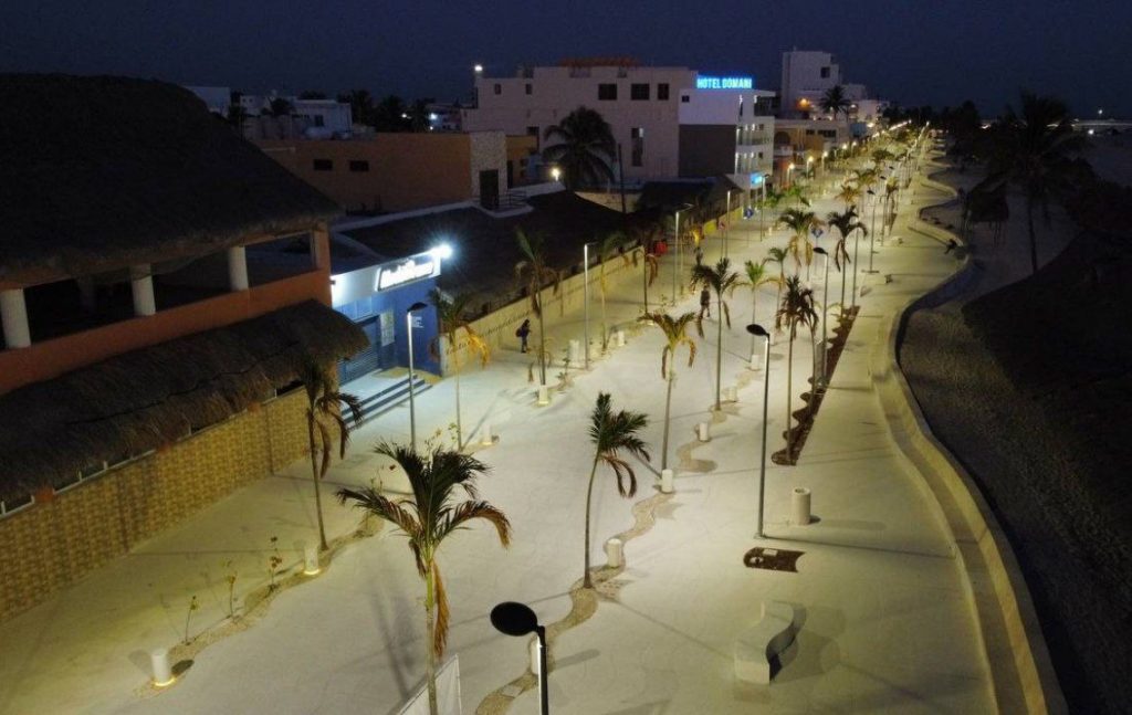 El director del Instituto para la Construcción y Conservación de Obra Pública en Yucatán (Inccopy), Virgilio Crespo Méndez, indicó que, se realizó también el suministro y colocación de 291 piezas de vegetación con plantas como uva de mar y palmas kerpis y de coco, para reforestación; iluminación urbana y arquitectónica en los recorridos a través de 260 piezas de iluminación con bolardos con tira led y postes con tecnología led; mobiliario urbano con más de 66 piezas entre bancas, botes de basura, señalización y bancas aparcabicicleta y la perforación y forjado de 41 pozos pluviales en el malecón y calles perpendiculares y forjado de registro pluvial.