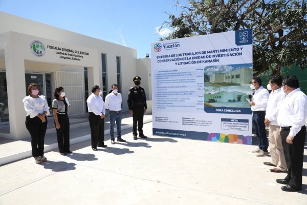 Como parte de la obra en la Unidad de Investigación y Litigación de Kanasín, con una inversión de cerca de 1.5 millones de pesos, se realizaron trabajos de impermeabilización; de desmantelamiento y reposición de salidas eléctricas y luminarias en interior; así como de aplicación de pintura vinílica al edificio.