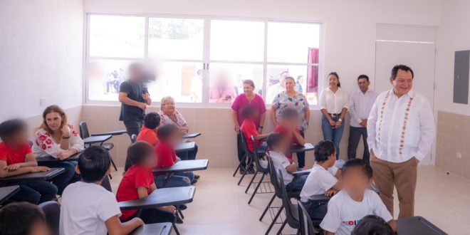 El gobernador Joaquín Díaz Mena inauguró las ampliaciones de la escuela primaria Casa Otoch, con nuevas aulas y espacios accesibles.