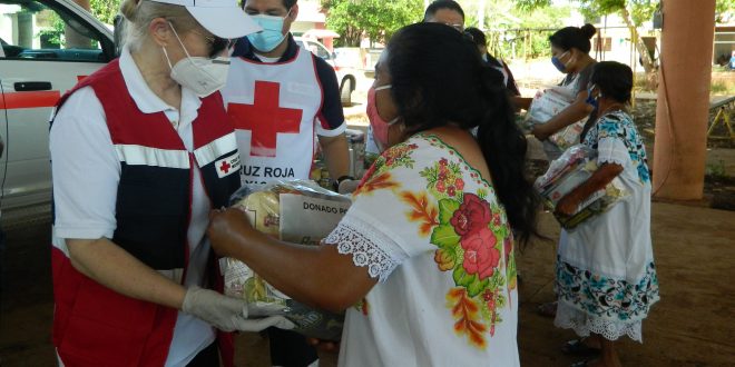 Tekax, Yucatán 13 de junio de 2020.- Con la distribución de despensas de la canasta básica donadas por Fundación Bepensa para familias afectadas por las inundaciones en el municipio de Tekax, inicio la entrega de apoyo humanitario por parte de la Cruz Roja Mexicana Delegación Yucatán.