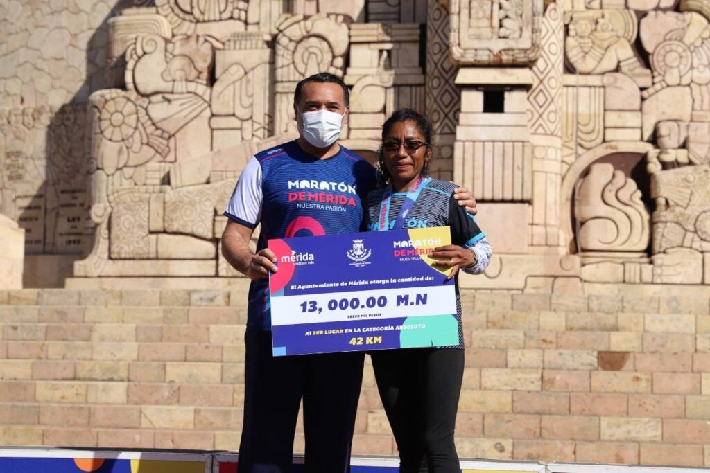 El alcalde Renán Barrera Concha fue el encargado de premiar a los ganadores absolutos, bajo el Monumento a la Patria, y estuvo acompañado de Rafael Rodríguez Méndez, Regidor Presidente de la comisión de Juventud, Deportes y Educación; Miriam Canul Cob, Presidenta de la Asociación Yucateca de Atletismo. A.C; Jesús Aguilar y Aguilar, Secretario Técnico de Deportes Municipal; y José Luis Martínez Semerena, Director de Desarrollo Economico y Turismo.