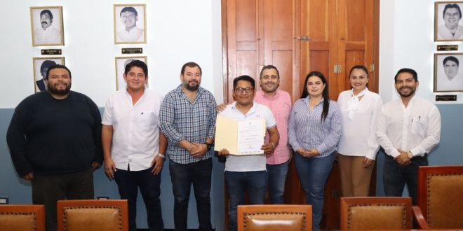 Tras la elección extraordinaria del pasado domingo 1 de diciembre, la nueva autoridad auxiliar recibió este jueves su nombramiento de manos de Góngora Frías, quien, en representación del alcalde Ing. Erik José Rihani González, dio la bienvenida a Cab Uc a su nuevo cargo, y lo alentó a trabajar en equipo con el Ayuntamiento de Progreso, a escuchar a las y los habitantes de la comisaría y a conducirse con respeto y responsabilidad.