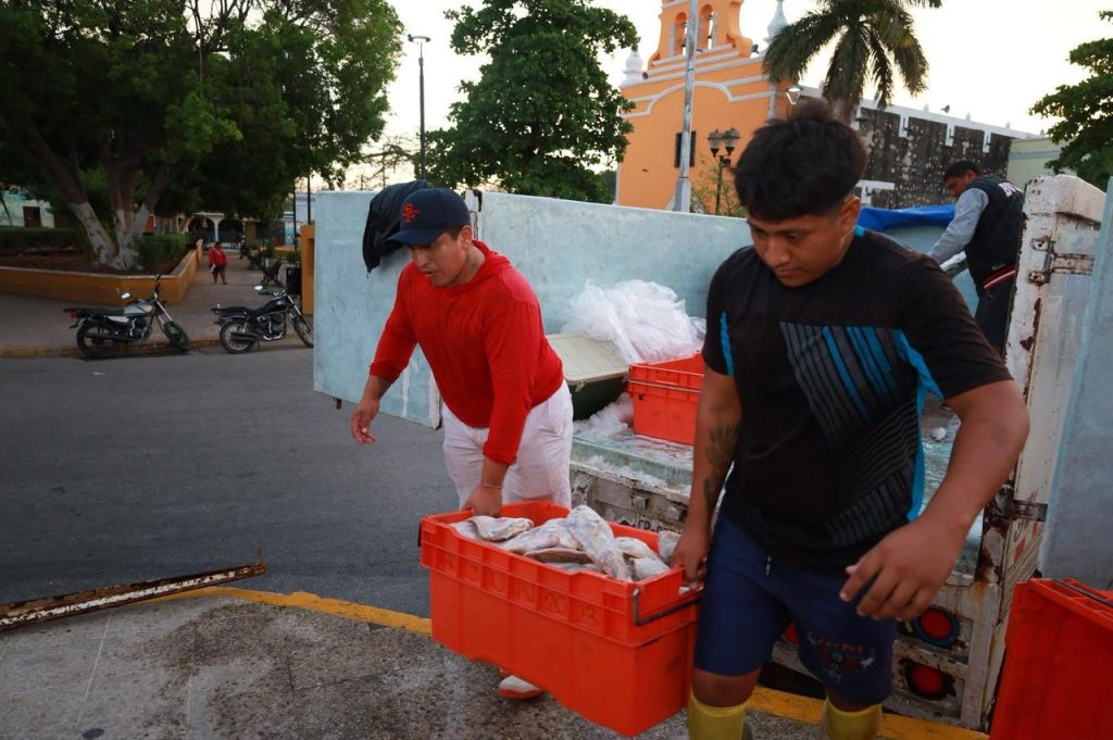 Entregan pescado gratuito a familias de Kanasín en el Palacio Municipal