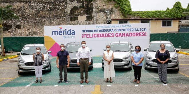 Mérida, 14 de julio de 2021. Como recompensa a su puntualidad, compromiso y solidaridad, el Ayuntamiento de Mérida entregó hoy los premios a los ganadores del sorteo “Mérida me asegura con mi Predial 2021”, en el que participaron ciudadanos cumplidos que pagaron el impuesto predial en los primeros meses del año.