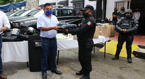 Para mantener un cuerpo policiaco acorde a las necesidades del municipio, el presidente municipal, Freddy Ruz Guzmán realizó la entrega de uniformes y aditamentos al equipo táctico de la Policía Municipal para que puedan desempeñar su trabajo de la mejor manera.