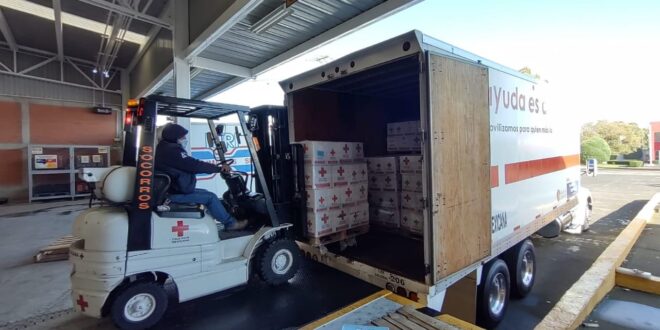 El camión con la ayuda humanitaria salió hoy del Centro Nacional de Acopio de Cruz Roja Mexicana, que coordina el área de Socorros de la Sede Nacional de la institución, ubicado en el Estado de México y se espere que por la tarde esté llegando a Poza Rica, Veracruz.