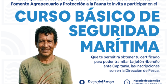 El curso permitirá a las y los participantes obtener su certificado, requisito indispensable para tramitar el tarjetón ribereño ante Capitanía, contribuyendo así a fortalecer la actividad pesquera de manera ordenada y segura.
