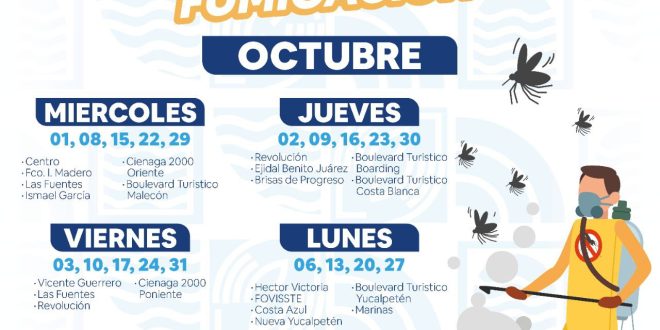 -Lunes 6, 13, 20 y 27: Héctor Victoria, FOVISSSTE, Costa Azul, Nueva Yucalpetén, Vicente Guerrero, Caleta, Marinas y Boulevard Turístico Yucalpetén.