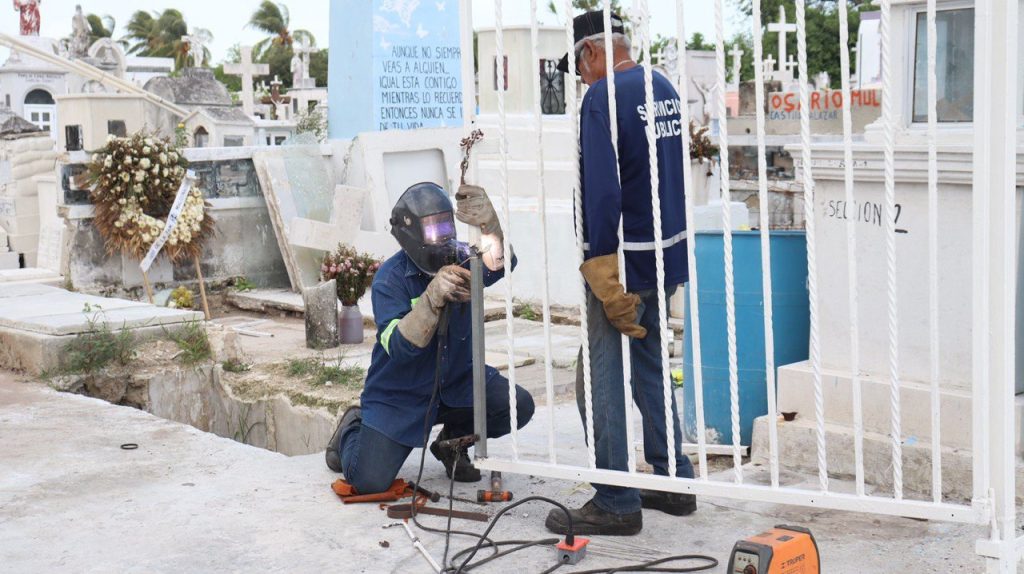 Progreso, Yucatán a 18 de octubre de 2024. Trabajos de soldadura, herrería, pintura, limpieza y fumigación, entre otros, serán parte de la atención integral permanente que estará realizando el Ayuntamiento de Progreso a los cementerios del municipio, informó el alcalde, Ing. Erik José Rihani González.
